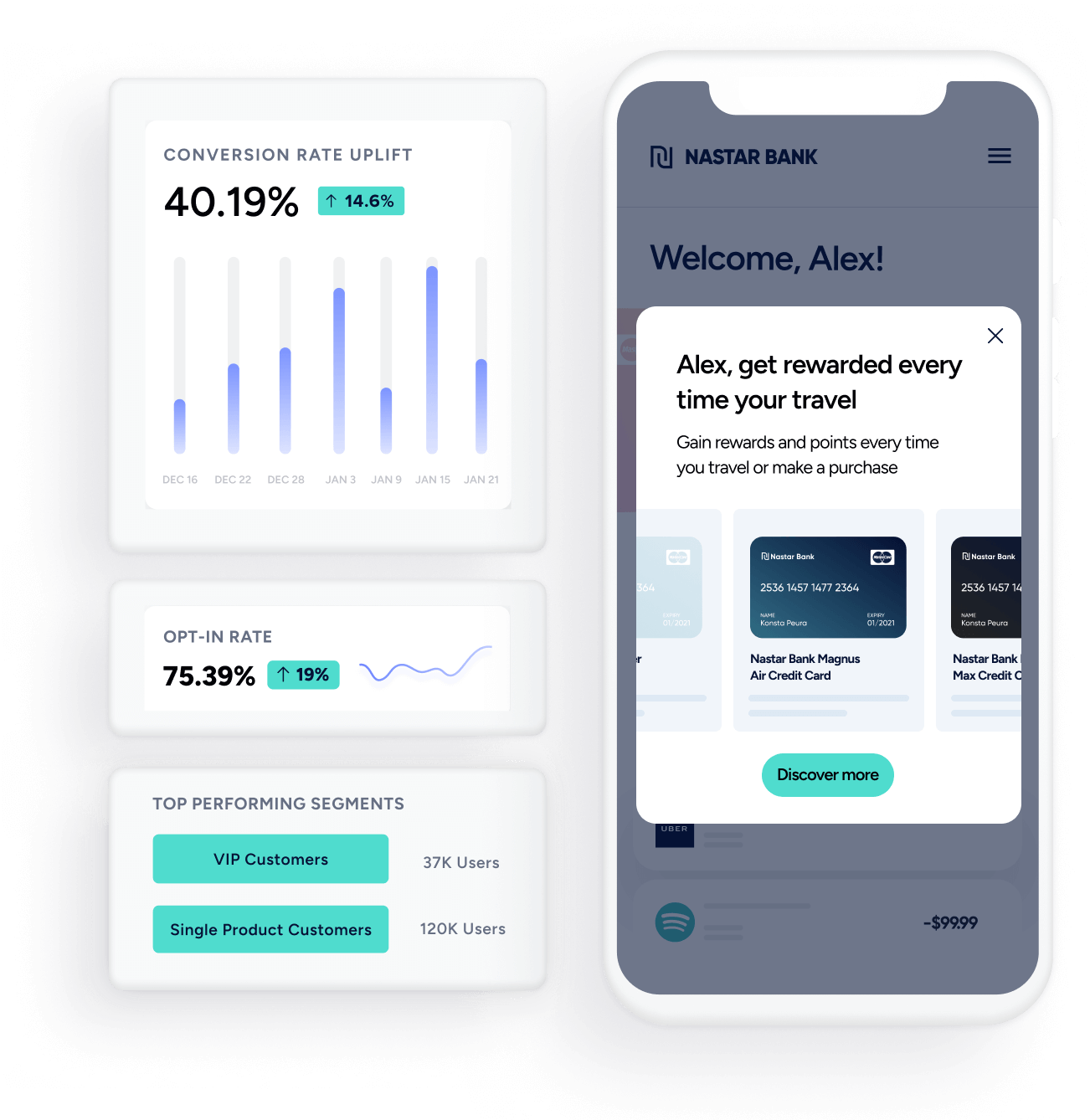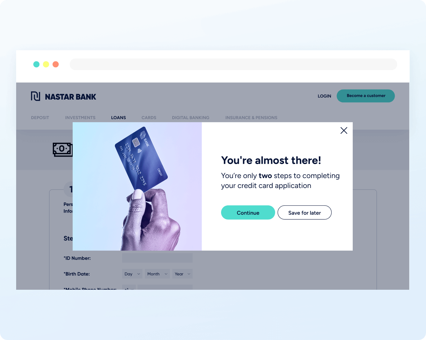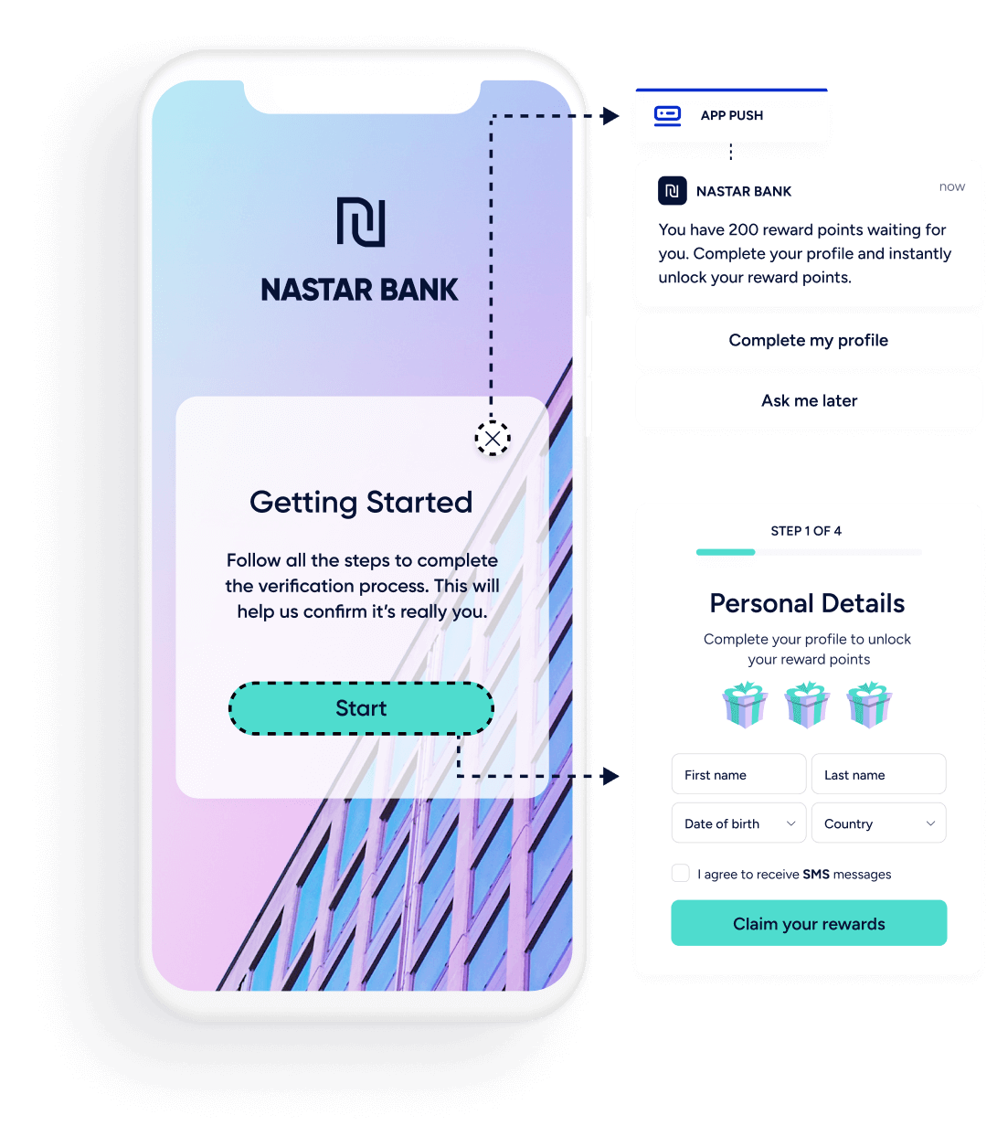 Rendez chaque expérience bancaire en ligne pratique, efficace et sans friction sur tous les appareils. Élaborez des processus de connaissance du client (Know Your Customer KYC) ludiques, créez des formulaires de demande intuitifs et personnalisez les expériences web, App, et plus encore pour stimuler l’engagement et renforcer la confiance des clients.