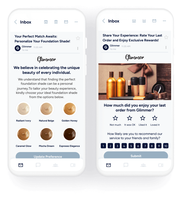 Leverage gamified surveys, interactive AMP-powered email experiences, and real-time surveys to collect first-party data to help you quickly guide customers to the right products for them.