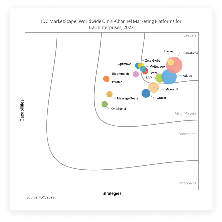 L’IDC Marketscape reconnaît Insider comme le leader qui « prend en charge une gamme impressionnante de tactiques de marketing omnicanal, notamment le marketing par mail, la personnalisation Web, les notifications push et les messages In-App.