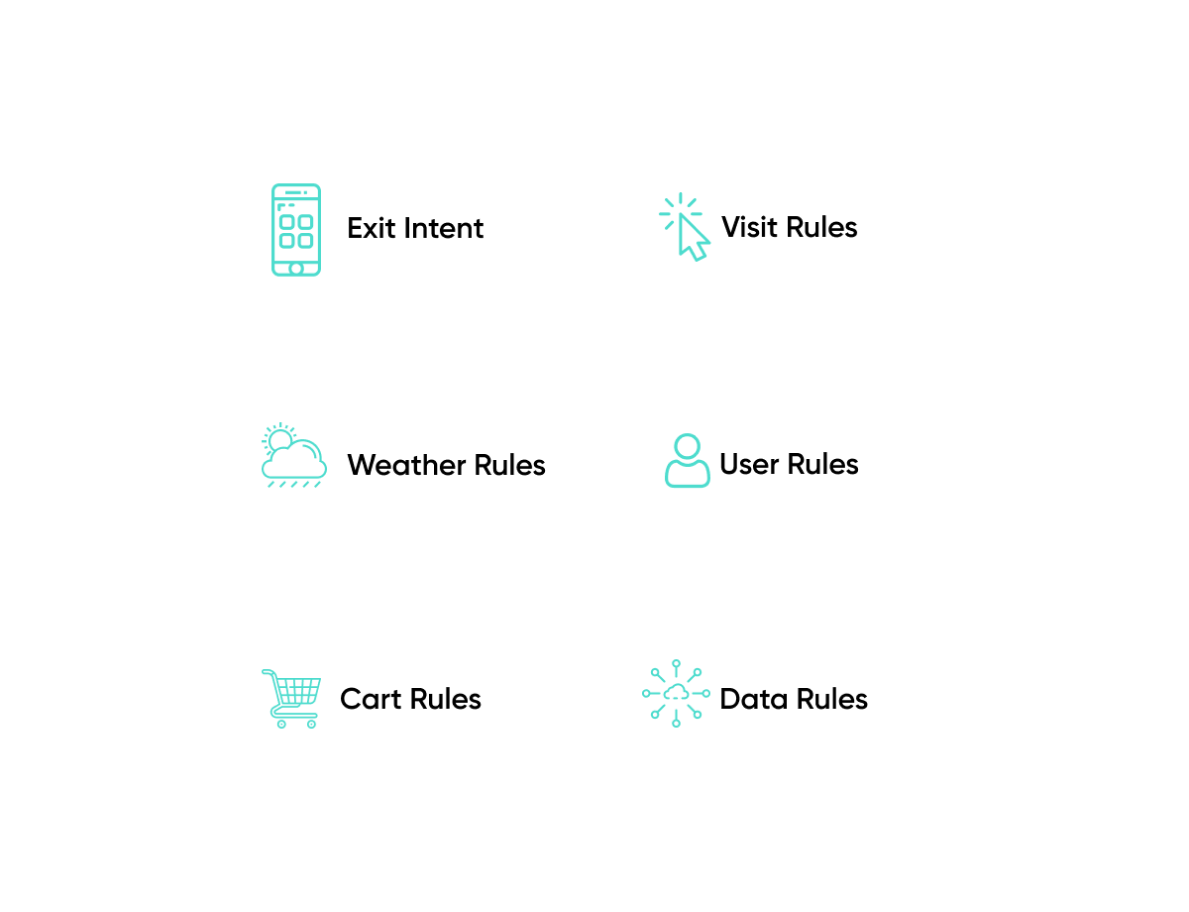 Insider’s rule engine helps you set parameters around sessions, exit intent, and even a customer’s local weather. Standard rules not cutting it? Write custom rules for unmatched control.