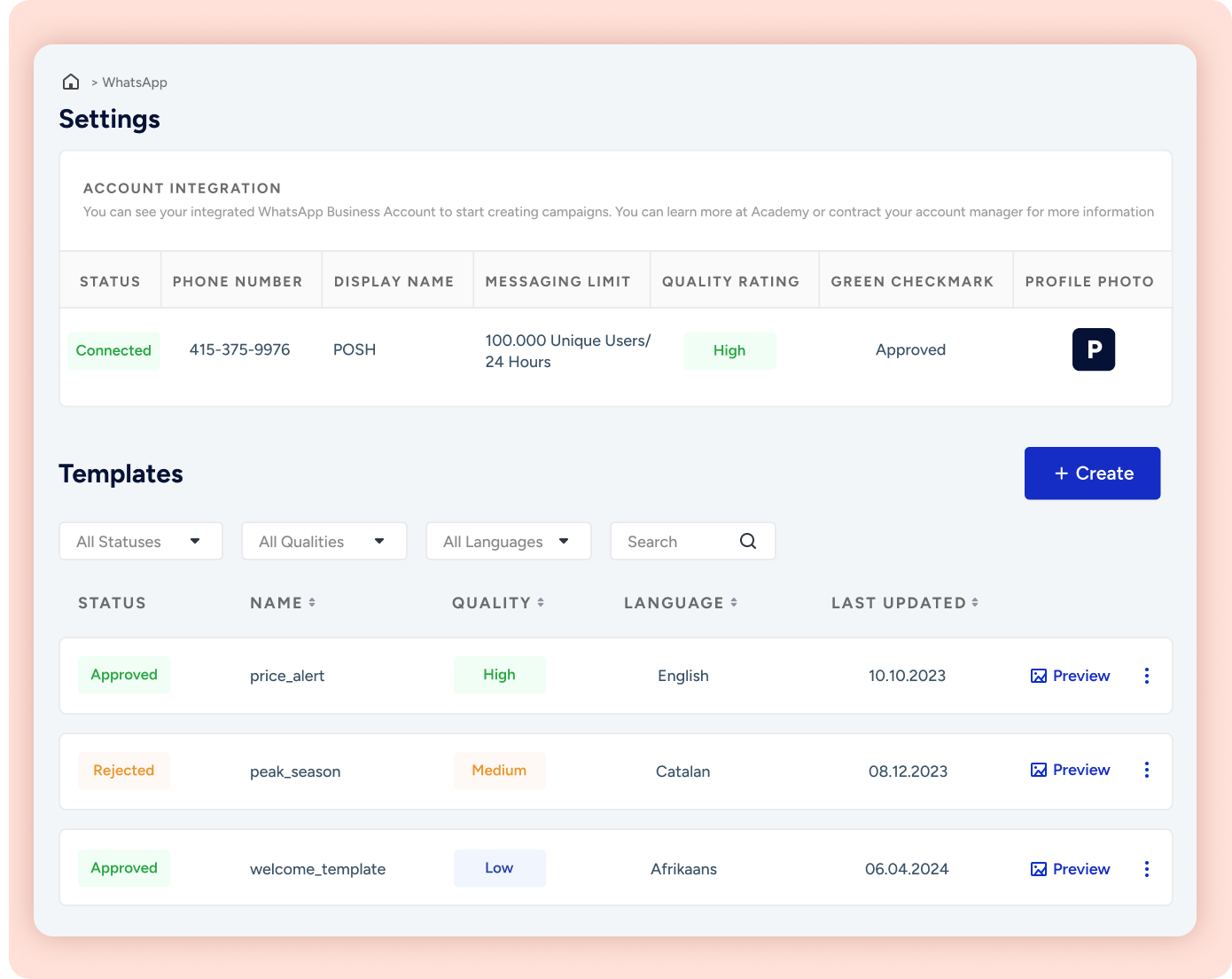 Centralize your brand’s WhatsApp accounts and stay on top of template approval from within Insider’s platform. Easily migrate from other providers within the panel to leverage Insider’s BSP features, including conversational commerce and advanced analytics.