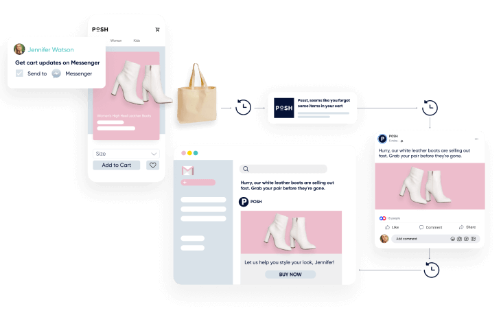 Price drop? Back in stock? Items left in the cart? Alert them with automated web push notifications. Save time with predesigned templates and watch customers flock back to your website.