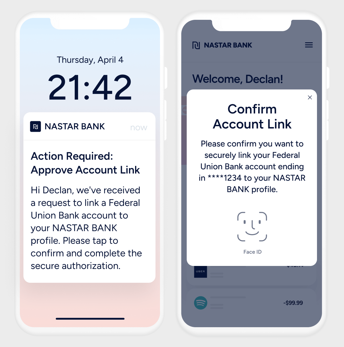 Trigger push notifications and require biometric or PIN confirmation for sensitive onboarding actions. Personalize flows by role and risk, ensuring security without disrupting the customer experience.