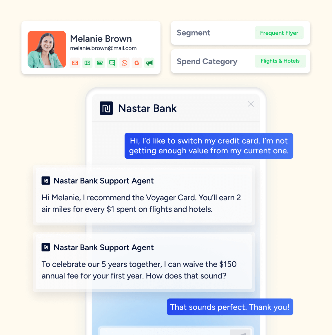 Trigger cross-sell and upsell opportunities based on customer behavior, financial milestones, or product lifecycle. Boost transactional frequency during the crucial Early Month on Book (EMOB) phase.
