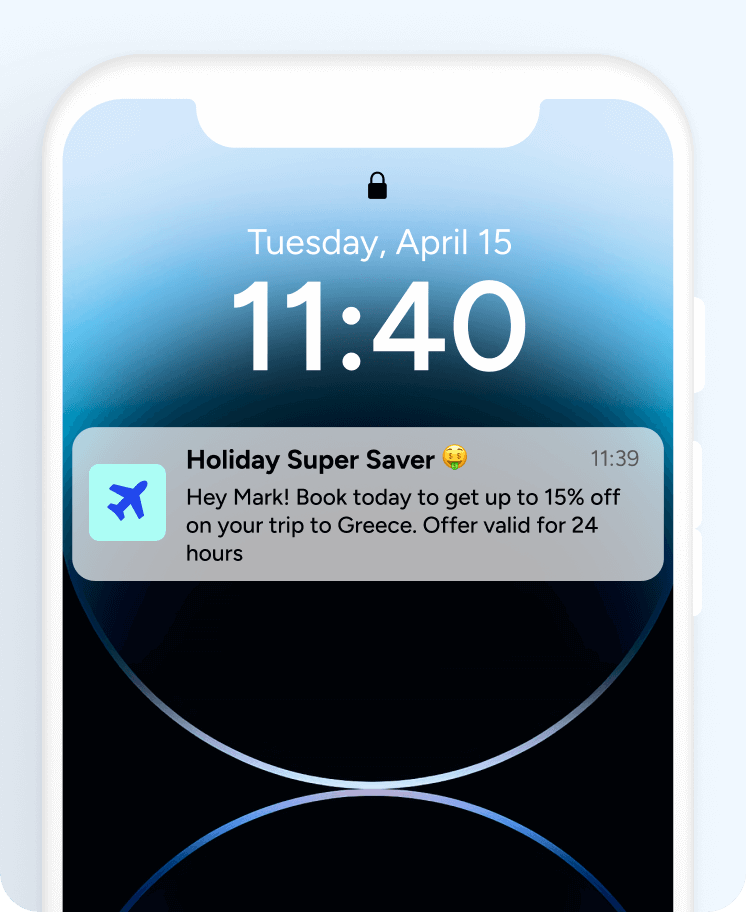 Use real-time insights like browsing patterns, travel frequency, and lifecycle stage in ads or send push notifications to create urgency