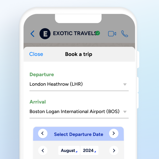 Allow customers to complete ancillary purchases within WhatsApp, from upgrading seats, adding extra baggage, placing in-flight orders, and more.