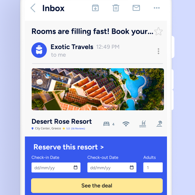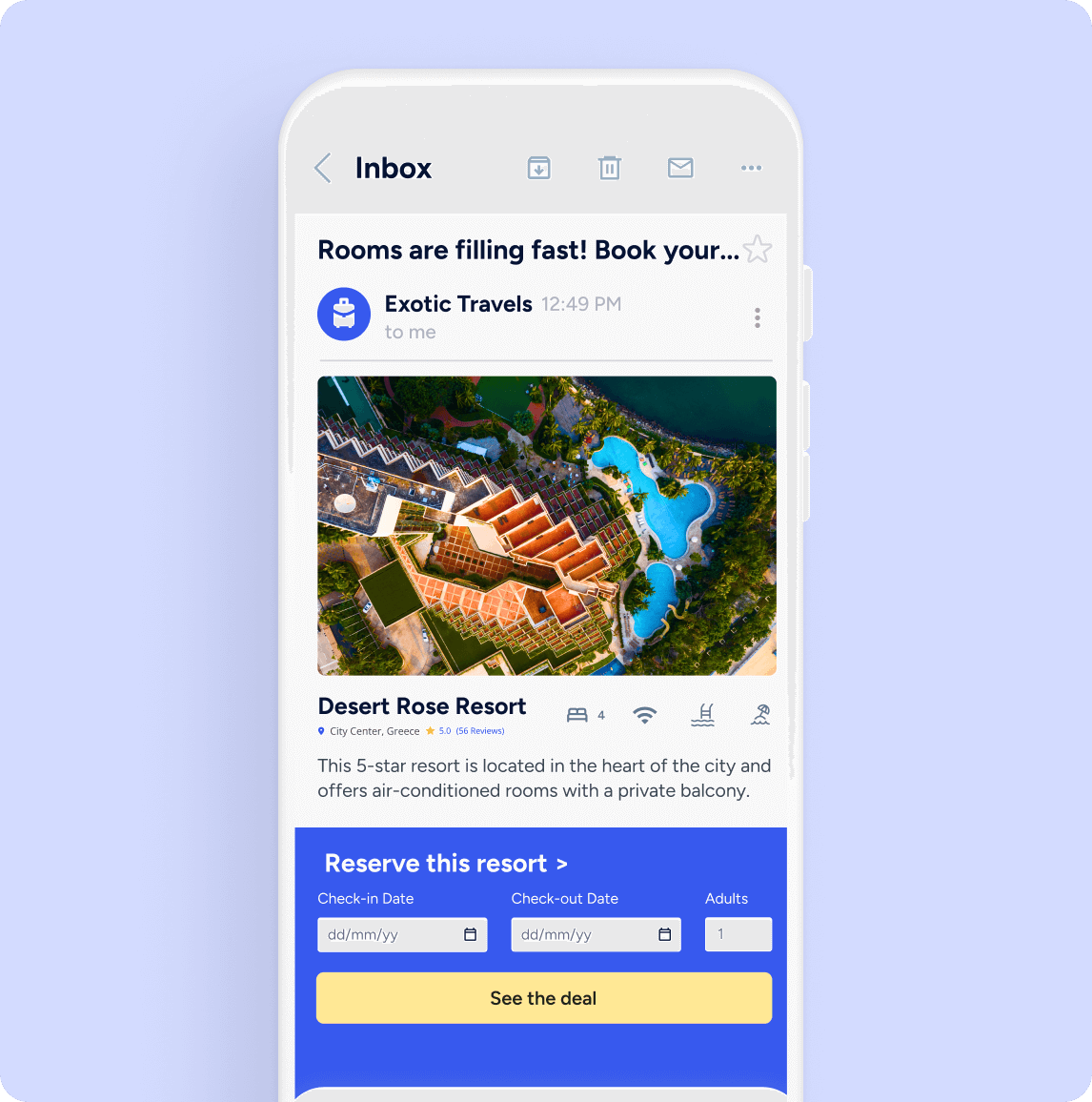 Transform email into a destination channel where users can discover, browse, and book without ever leaving their inbox.