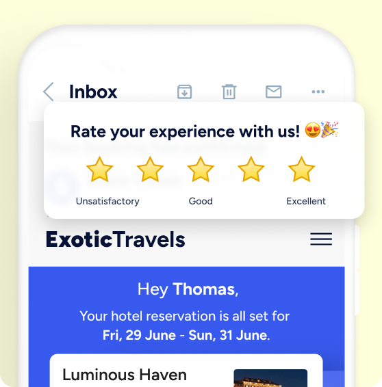 Create meaningful retention journeys by collecting actionable feedback with interactive surveys after their trip on their favorite channels