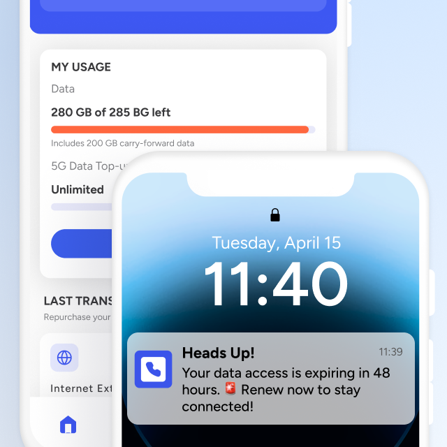 Send real-time package and quota depletion reminders using app push to boost renewal and replenishment rates.