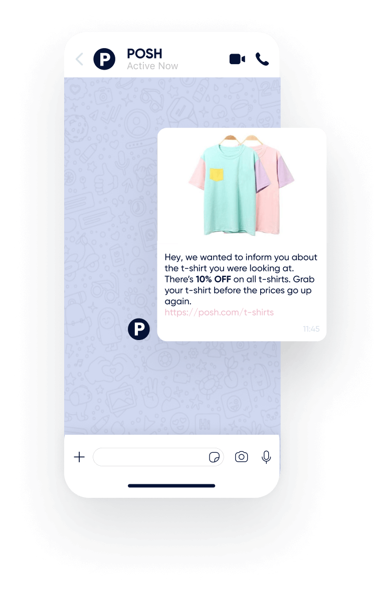 With the average customer active on six or more channels, you need to be where they are. Engage millions who are already active on messaging channels like WhatsApp Business and Facebook Messenger with one-to-one messaging.
