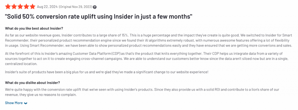 To learn more about Insider’s capabilities and how they can help you boost conversions, increase AOV and LTV, and reduce CAC, book a live demo with our team.