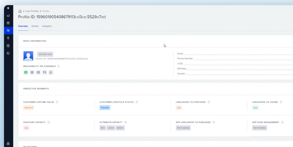 Our platform uses advanced AI to predict customer behavior, such as their likelihood to purchase, churn risk, or potential spending power. These predictive insights allow you to take proactive action, orchestrate customer journeys, and drive better results.