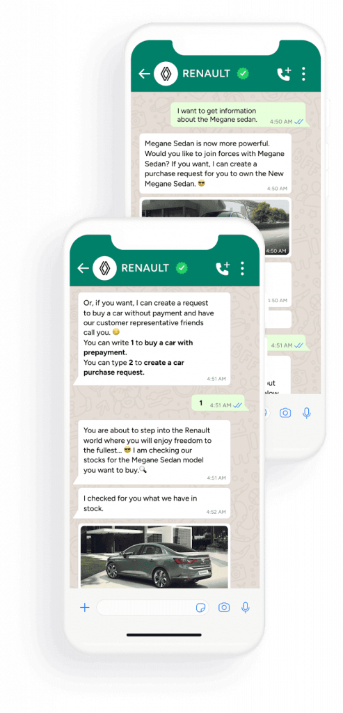 - Deliver fast customer service across messaging channels. Renault consolidated its customer data with our CDP in order to facilitate consistent experiences across channels. Then, they used our AI-powered virtual assistant to engage customers and provide quick support via WhatsApp. This led to a 93% decrease in customer service wait times.