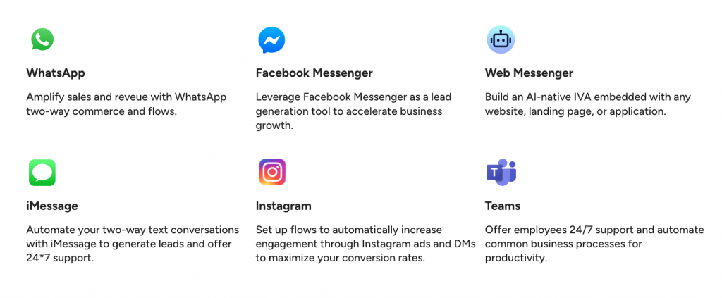 If you’re interested in having conversations with customers — whether for marketing, sales, or customer service purposes — our platform also supports channels like Facebook Messenger, iMessage, Instagram, and Microsoft Teams.