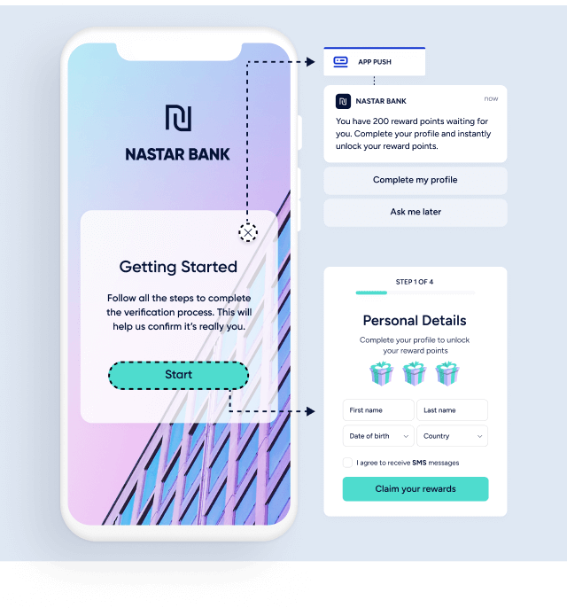 Rendez chaque expérience bancaire en ligne pratique, efficace et sans friction sur tous les appareils. Élaborez des processus de connaissance du client (Know Your Customer KYC) ludiques, créez des formulaires de demande intuitifs et personnalisez les expériences web, App, et plus encore pour stimuler l’engagement et renforcer la confiance des clients.