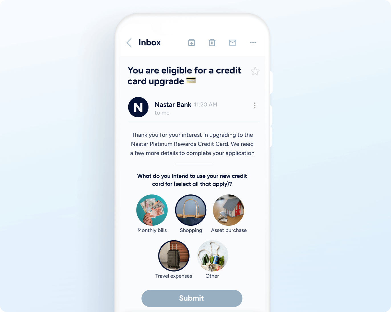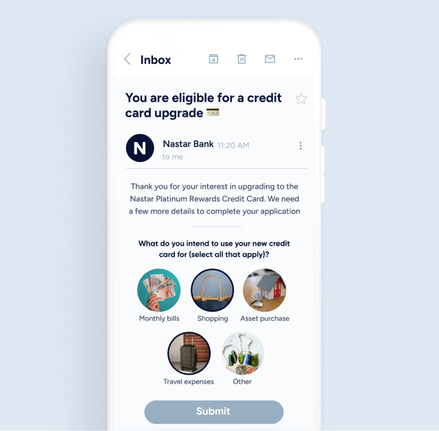 Leverage gamified surveys, interactive AMP-powered email experiences, and real-time surveys to collect first-party data to help you quickly guide customers to the right products for them.