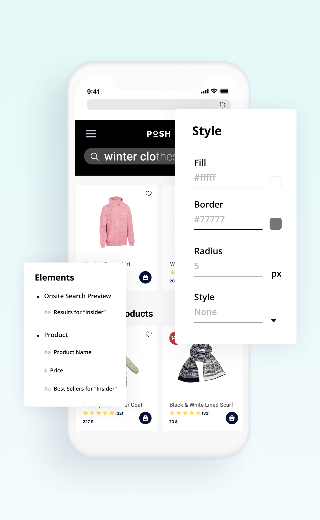 ¿Qué es lo adecuado para tu sitio? ¿Una vista de búsqueda instantánea o personalización? ¡Tú decides! Elige una vista de búsqueda instantánea de nuestras plantillas preconstruidas o diseña la tuya propia conectándote fácilmente a nuestra API. Personalízala aún más utilizando HTML, CSS y JS en nuestro panel.