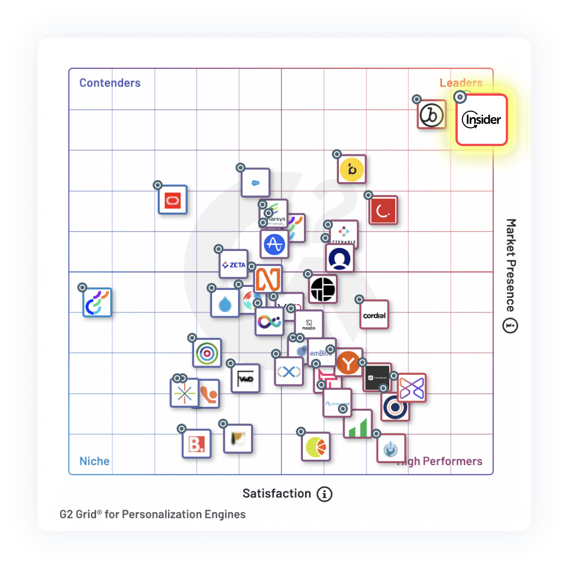 Hemos encabezado las listas como el Líder #1 en Personalización de Comercio Electrónico de G2. Nuestras soluciones de personalización y optimización impulsadas por IA son la mejor opción para las principales marcas de comercio electrónico global que buscan ofrecer experiencias cross-channel personalizadas.