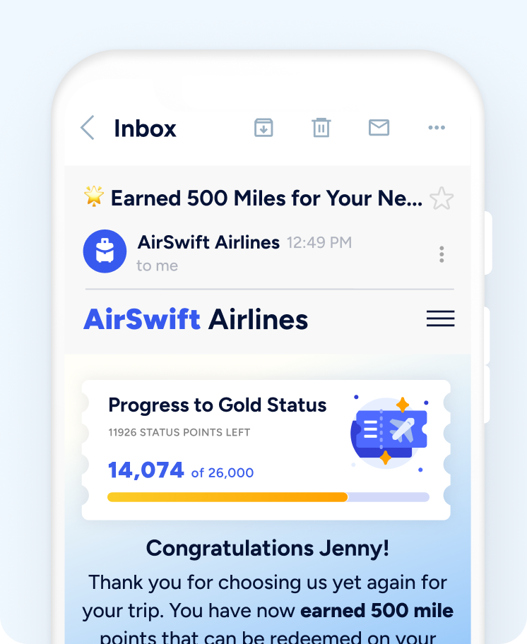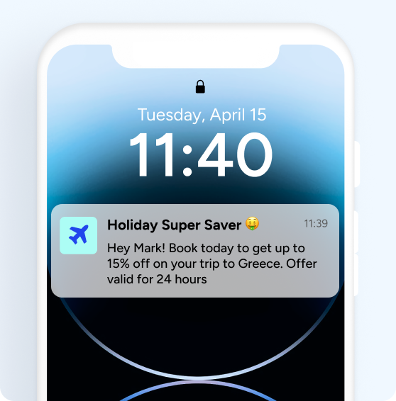 Inspire a los viajeros fieles con ofertas de tarifas exclusivas utilizando plantillas push e in-app sin ninguna dependencia de codificación.