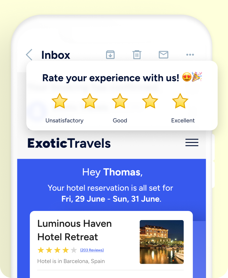 Transforme el correo electrónico en un canal de destino en el que los usuarios puedan descubrir, explorar y reservar sin salir de su bandeja de entrada.