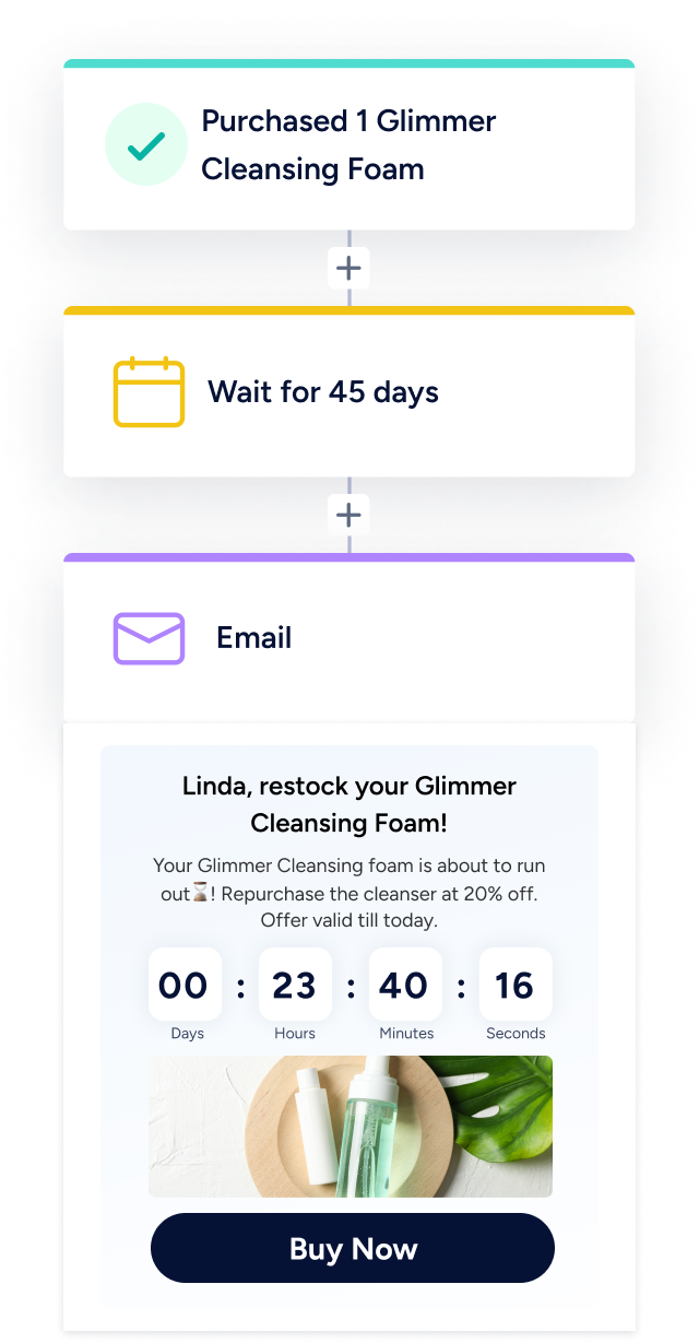 Tailor your emails with dynamic content based on real-time behavioral triggers like making a purchase and adding to a wishlist. Elevate this with additional contextual information, including weather, location, and time, to hyper-personalize your email content and maximize engagement.
