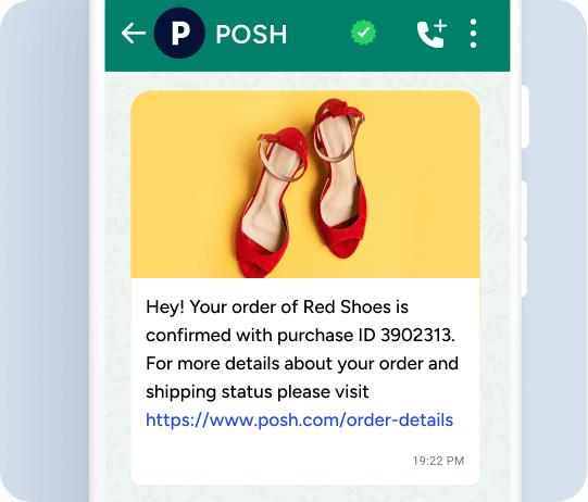 Engage your customers post-purchase with personalized rich order confirmation messages.