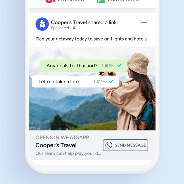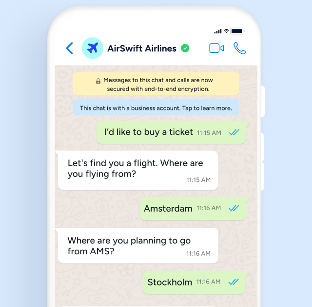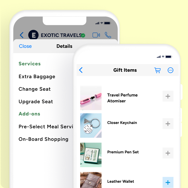 Allow customers to complete ancillary purchases within WhatsApp, from upgrading seats, adding extra baggage, placing in-flight orders, and more.