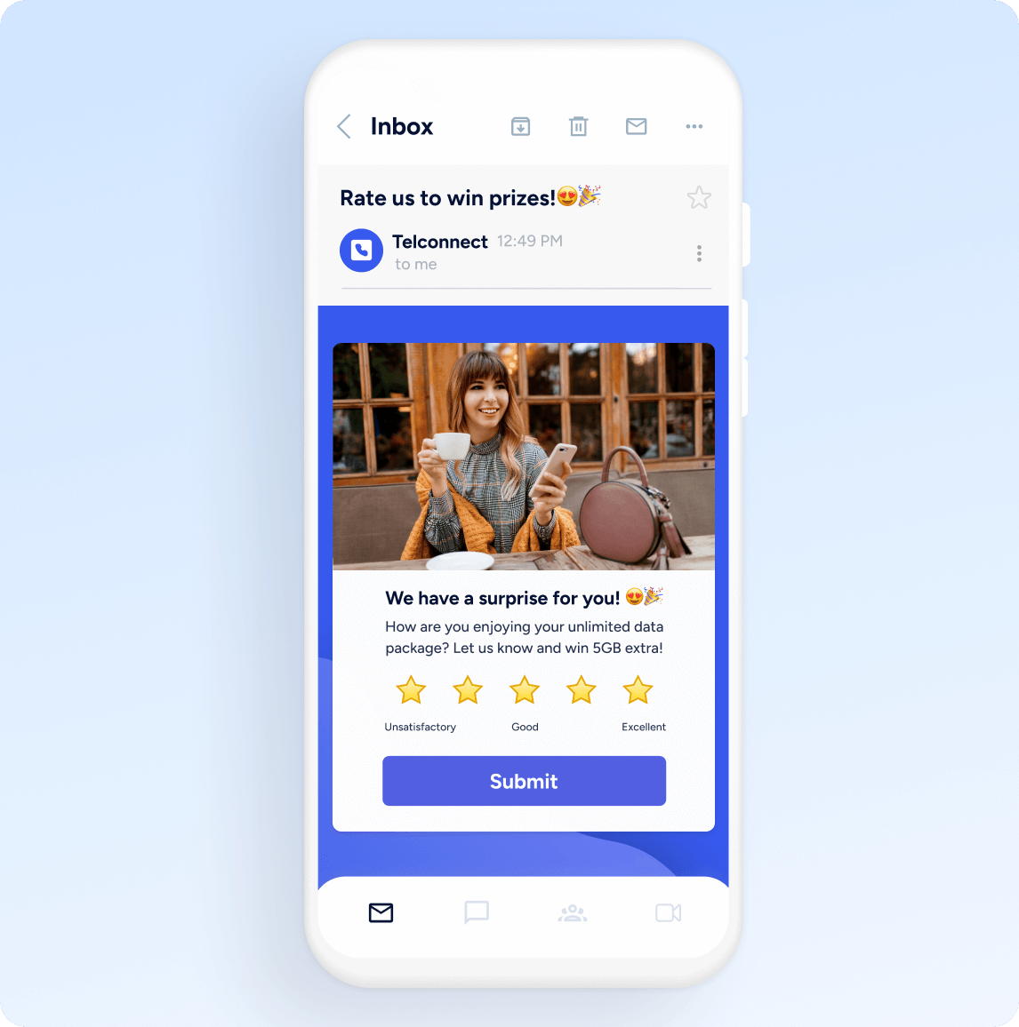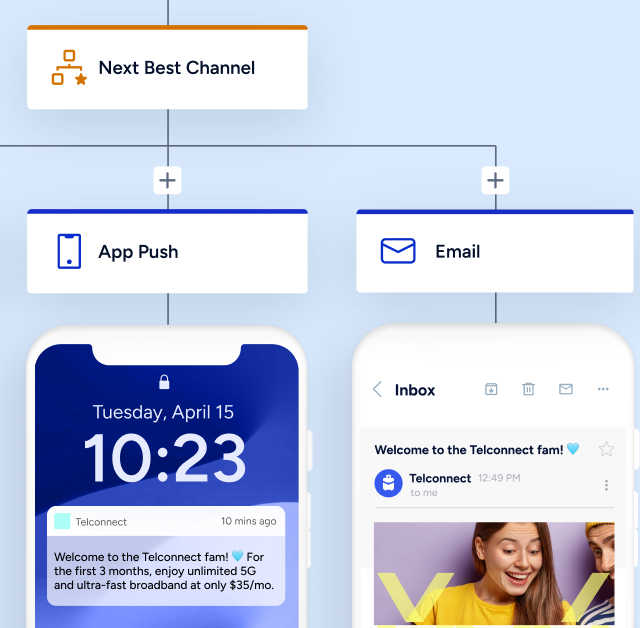 Unlock new revenue with cross-channel journeys tailored to the multi-touchpoint engagement cycle typical in telecom services. Telco users, who share highly personal data, demand heightened personalization across channels such as SMS, WhatsApp, App, Push Notifications, and Email. Ensure a seamless and unified experience across all touchpoints throughout the customer journey to enhance satisfaction and engagement.