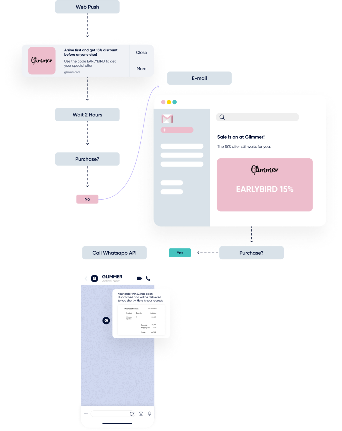 From SMS to email to WhatsApp and every channel in between, you have plenty of opportunities to connect with your customers. By consolidating customer data from every touchpoint, you’re able to deliver cross-channel recommendations and craft end-to-end buying experiences across all their favorite channels.