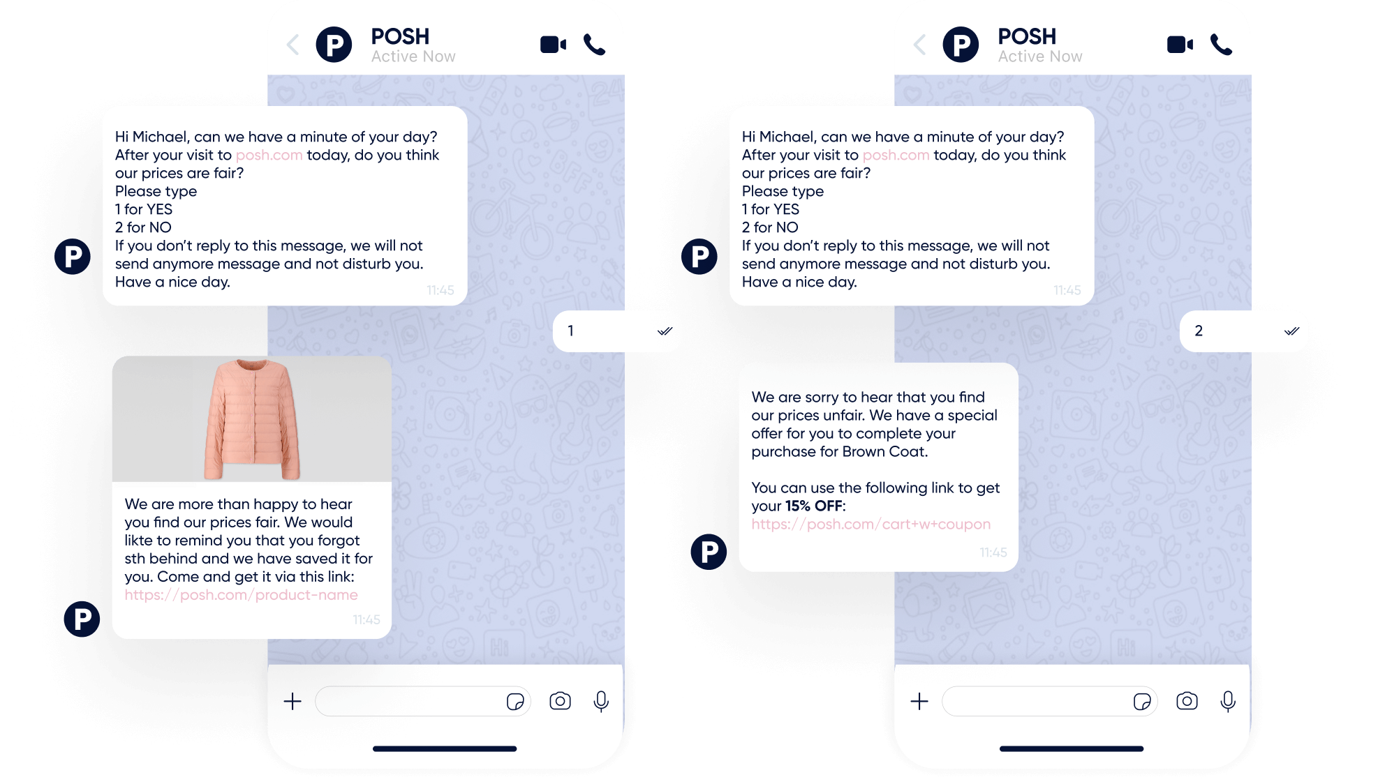 Deliver more value to your customers and let their actions decide on what messages they’ll receive from you. Engage your users with interactive cart abandonment messages and up your chances of converting them.