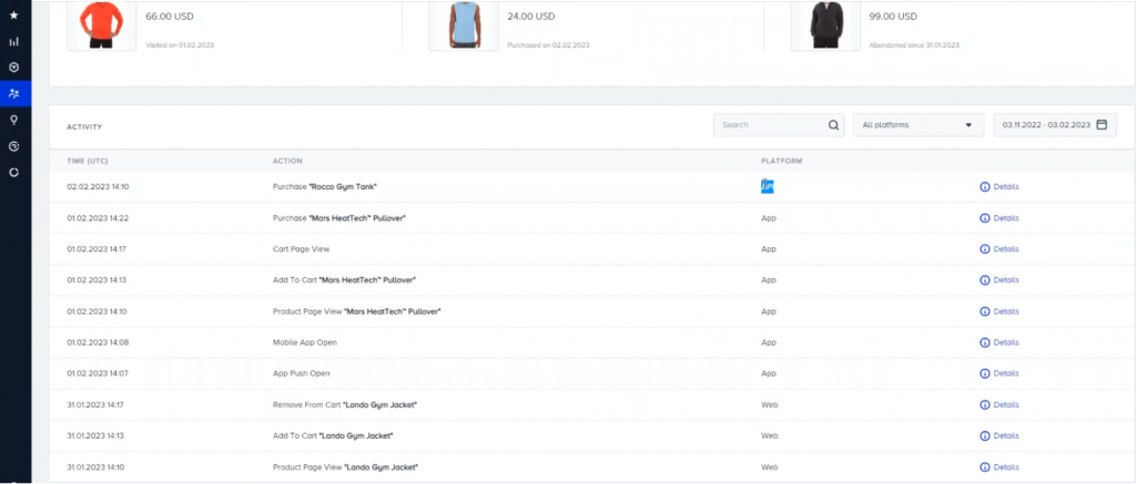 Thanks to this capability, you don’t need to unify your data in another CDP and then pass it into Insider (although that’s also an option if you prefer). Plus, you get 360-degree profiles of all customers filled with valuable information about their purchase history, channel reachability, last visited and abandoned products, and much more.