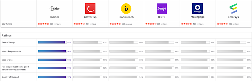 Additionally, customers rank Insider as the top solution provider in categories like ease of use, ease of setup, and support quality, compared to Braze, CleverTap, Bloomreach, and all other major omnichannel solutions.