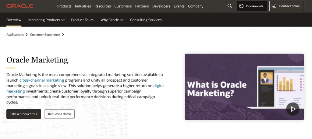 Oracle Marketing is a cloud-based marketing platform comprising various martech solutions. Most of the platform is made up of products acquired by Oracle over the years, like Eloqua (for marketing automation) and Maxymiser (for testing and optimization). The entire product set helps companies unify customer data, deliver personalized experiences, and increase customer loyalty and retention