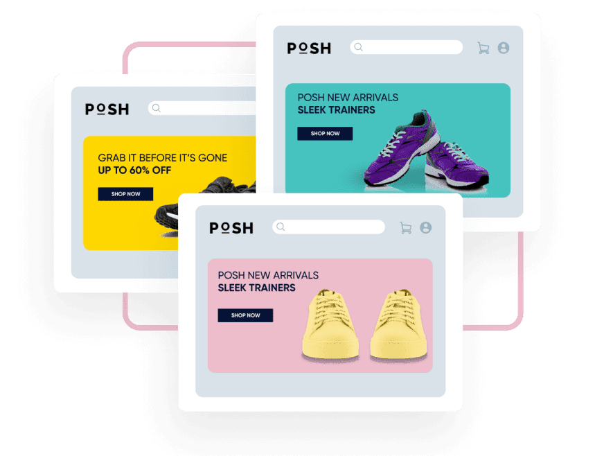 You choose templates based on your goals — like increasing leads, conversions, engagement, app downloads, and so on — and easily customize them with your brand’s logo, colors, and messaging.